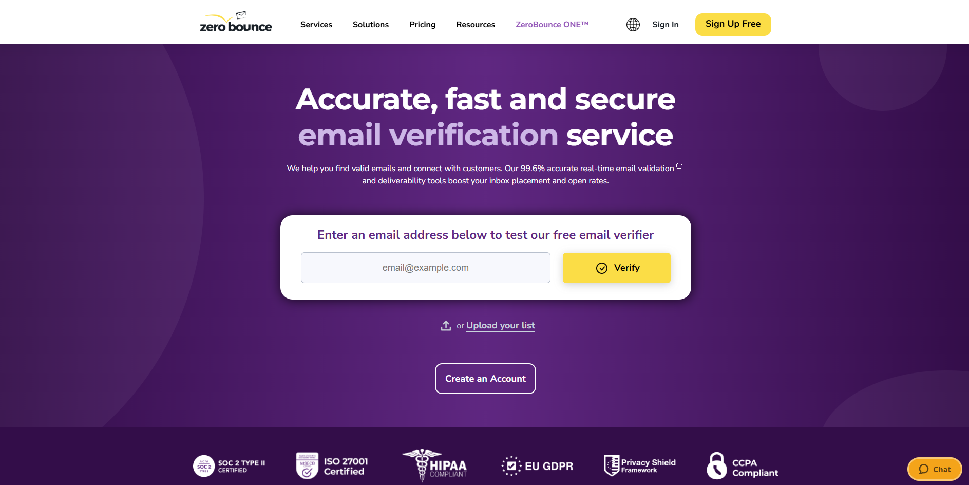 ZeroBounce is a dedicated verification service with a focus on integrations. With more than 60 third-party platform connections, it runs effortless API-based real-time validation and list cleaning in addition to single and bulk verifications. The platform also flags and removes invalid email addresses, abuse emails, spam traps, disposable email addresses, and catch-all addresses. It also offers significant added value for sales teams, including blacklist and DMARC monitoring, email activity data and scoring, and a free list-evaluation feature.